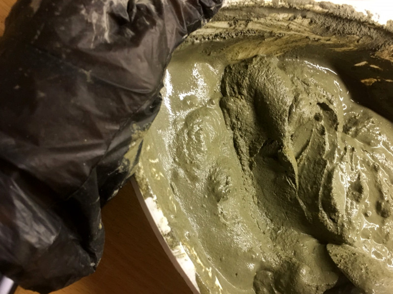 - mischt den Beton laut Packungsangabe an – dabei unbedingt Handschuhe tragen, da ihr sonst Verätzungen davontragen könnt.