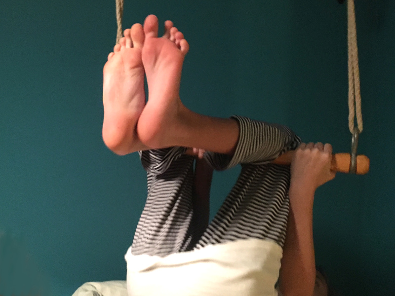 Während dem Studium hatte ich eine Freundin, die einige Jahre in Afrika gelebt hat. Von dort inspiriert, lagen in ihrem großen Wohnzimmer in der Ecke 2 Matten, darüber waren 2 Ringe befestigt. Schlicht aber gut genutzt. Ihre Kinder turnten dort herum wie kleine Affen und ich hab sie insgeheim immer beneidet.