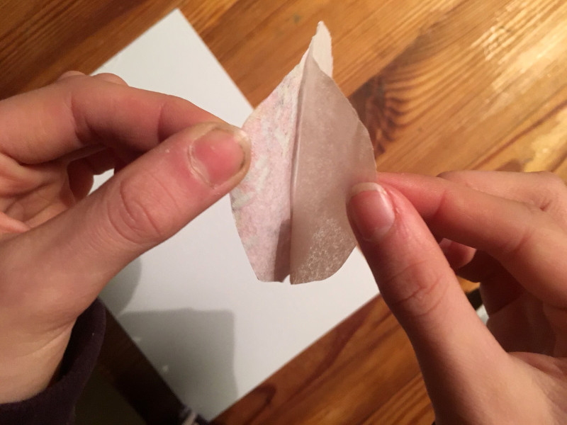 - Dann gebt ihr alle Serviettenblätter bis auf das oberste, bedruckte Motivblatt weg.