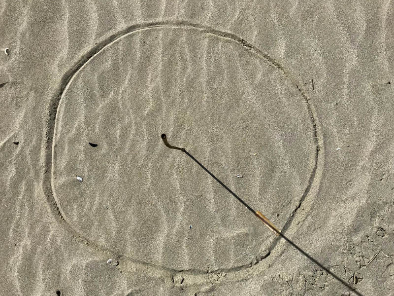 - einen weichen Untergrund, in den ihr einen Kreis zeichnen und einen Stab hineinstecken könnt.