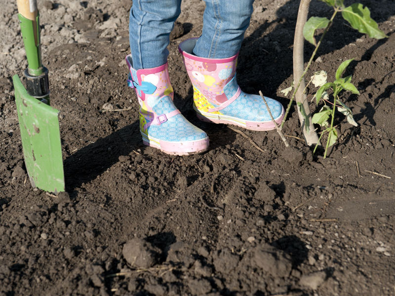 Natürlich gibt es auch die Möglichkeit einen Teil für die Kinder zu reservieren. Meiner Erfahrung nach wollen aber vor allem die Kleinen oft genau dort sein, wo ihr euch gerade aufhaltet. Aus diesem Grund geht normalerweise nicht so viel weiter, wie man eigentlich gerne möchte. Also eigentlich wie bei allen Aktivitäten mit Kleinkindern ist auch hier der Weg das Ziel und nicht umgekehrt. Deshalb erledigen wir bestimmte Arbeiten einfach ohne Kinder. Der zweite Elternteil kommt mit den Kindern später oder geht auf Entdeckungstour in der Umgebung. Je älter die Kinder werden umso einfacher wird es. Bei unserer Älteren hat auch das tatsächliche Interesse an der Gartenarbeit mit jedem Jahr zugenommen. Außerdem brauchen die älteren Kinder viel weniger Unterstützung und genießen dann auch die Zeit für sich.