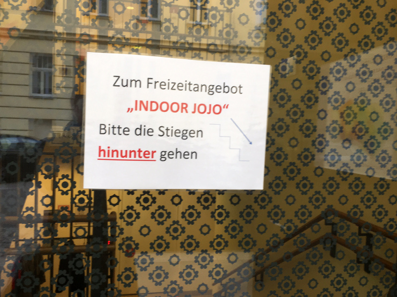 Er liegt echt edel, im Souterrain der Residenz Josefstadt. Ich habe keinen Lift wahrgenommen und es sind schon einige Stufen zu bewältigen. Im Keller angekommen, ist im Vorraum ein Garderobenständer sowie eine Sitzgarnitur, wo man etwas essen und trinken kann oder die Begleitpersonen warten können. Kinder über 3 Jahren dürfen nämlich auch alleine in den Raum hinein, allerdings bleibt die Aufsichtspflicht bei den Begleitpersonen.