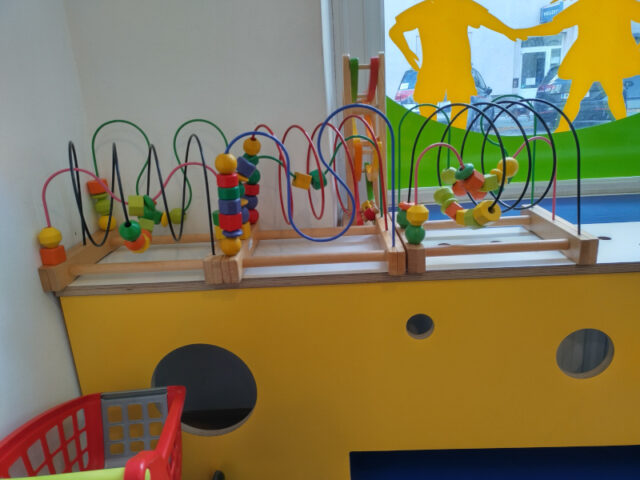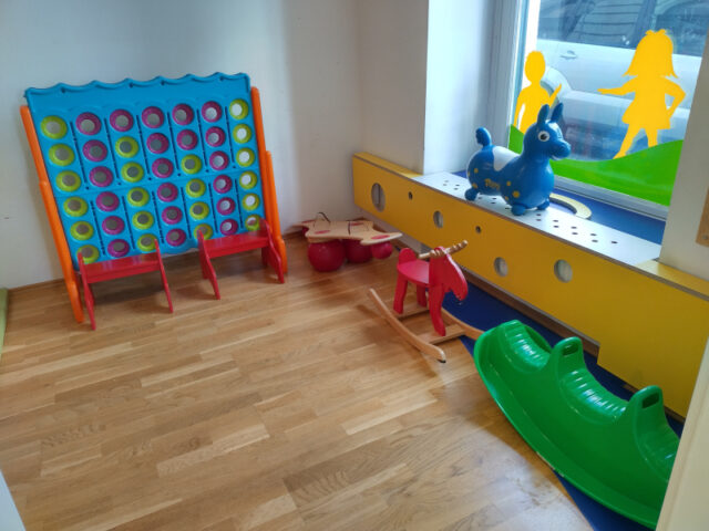 Fad wird den Kindern hier sicher nicht so schnell. Es gibt ein riesiges 4-Gewinnt-Spiel, Motorik-Schleifen für jüngere Kinder, Bücher, Puppen, Lego, eine Kugelbahn und Spielzeugautos.