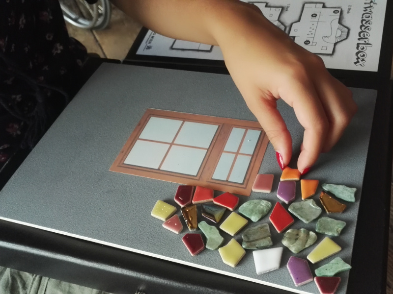 Für einen Museumsbesuch ohne Führung gibt’s bei der Kassa die Hundertwasserbox! Diese ist ideal, wenn man mit Kindern das Hundertwasserhaus eigenständig erkunden will. Sie enthält kindgerechte Infos über Hundertwasser und kreative Anleitungen für die Entdeckungstour. Mit Puzzle, Zeichenkreisel, Buntstiften, Mosaiksteinen und Heft ausgestattet malten die Kids Spiralbilder, gestalteten ihr persönliches Mosaikfenster und erfuhren, warum Hundertwasser Bäume auf Dächer pflanzen wollte. Es gibt noch weitere Anleitungen, die wir mit den Kindern durchführten, aber alles möchte ich nicht gleich verraten.