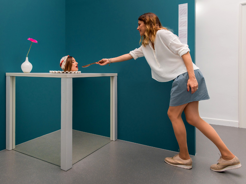 machen. Das ist ja sonst in Museen eher selten. Besonders toll fanden wir den „Ames Raum“, den „unendlichen Raum“ und den „Kopf auf dem Präsentierteller“. Aber auch die gewöhnlichen Wahrnehmungstäuschungen haben mir gut gefallen, besonders, weil man sie gleich überprüfen kann. Nur im Vortext-Tunnel konnte ich mich nicht länger aufhalten, da wurde mir schummerig.