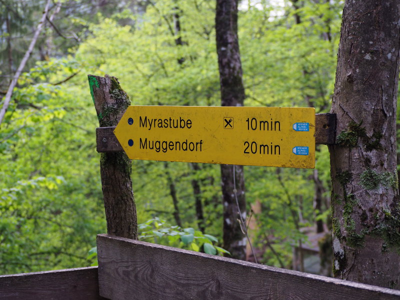 Wenn in Wien die Hitze sich breit macht, ist ein Ausflug in eine Klamm, zu einem Wasserfall oder in eine Höhle herrlich. Dazu muss man zwar ein bisschen fahren, aber es gibt einige wirklich schöne Möglichkeiten in der Nähe von Wien. Die Myrafälle sind z. B. im Frühling und Sommer ein ideales Ausflugsziel: beeindruckende Natur die über Holzstege erschlossen wurde, herrliches tosendes Wasser, Spielplätze und Einkehrmöglichkeiten sowohl am Beginn als auch zwischendurch und gut ausgeschilderte Wanderwege. Wer sich einen einzigen beeindruckenden Wasserfall erwartet, wird enttäuscht sein, denn es sind eher viele kleinere – ein tosender Bach, der sich seinen Weg über Stock und Stein bahnt. Wir haben die Myrafälle entdeckt, als die Kinder klein waren und wir nach kindertauglichen Wandermöglichkeiten in der Nähe von Wien suchten. Am Wochenende bei Schönwetter kann ganz schön viel los sein, daher waren wir meist unter der Woche oder an trüberen Tagen dort.