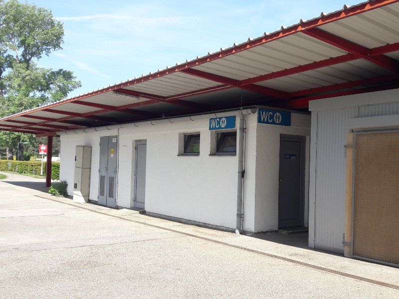Im vorderen und im hinteren Teil des Spielplatzes gibt es jeweils einen Trinkbrunnen und WCs. Wer keine Jause dabei hat, kann sich beim Kiosk mit kleinen Snacks versorgen.