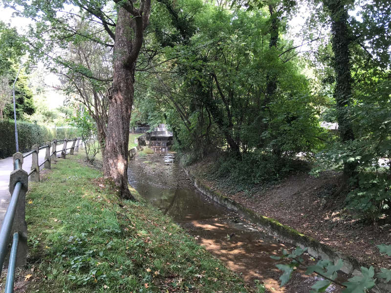 Da der Spielplatz nicht direkt an der Straße liegt, muss man sich auf einen kleinen Spaziergang (ca. 15 Minuten) einstellen. Man kann entweder beim Europahaus hineingehen und dann geradeaus hinunter. Oder man folgt dem Prilisauerweg am Bächlein entlang.