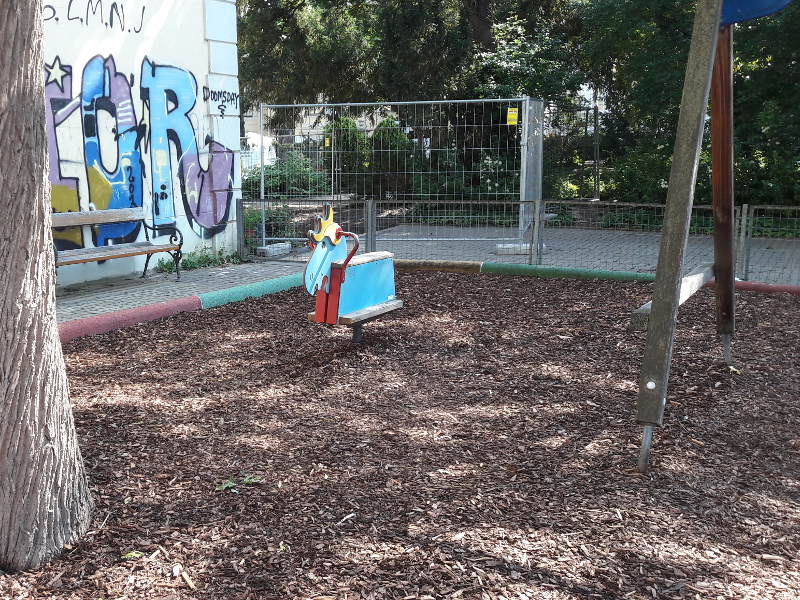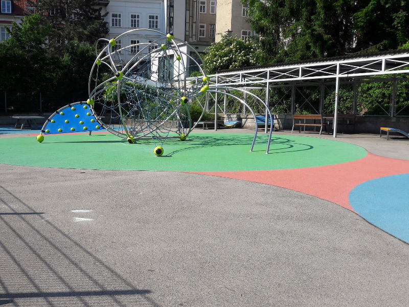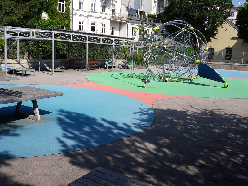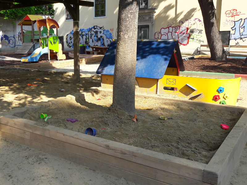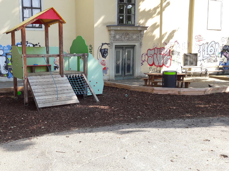 Im hinteren Bereich befindet sich der Spielplatz für Kleinkinder. Durch die Nähe zum historischen Gebäude des Volkskundemuseums, dem Palais Schönborn, hatte ich ein bisschen das Gefühl ,die Zeit ist stehen geblieben.
