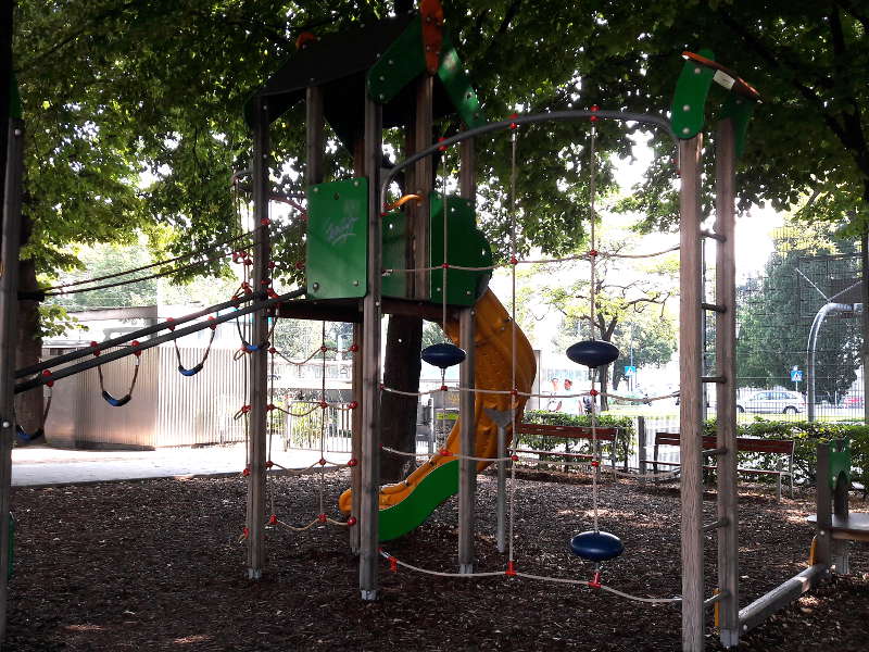 Als Zwischenstopp oder wenn man ums Eck wohnt ein feiner Spielplatz – vor allem für die jüngeren Kinder. Auf kleiner Fläche können die Kinder erstaunlich viele unterschiedliche Sachen ausprobieren. Im Sommer ist er gut besuchbar, weil die großen Bäume angenehmen Schatten bieten.