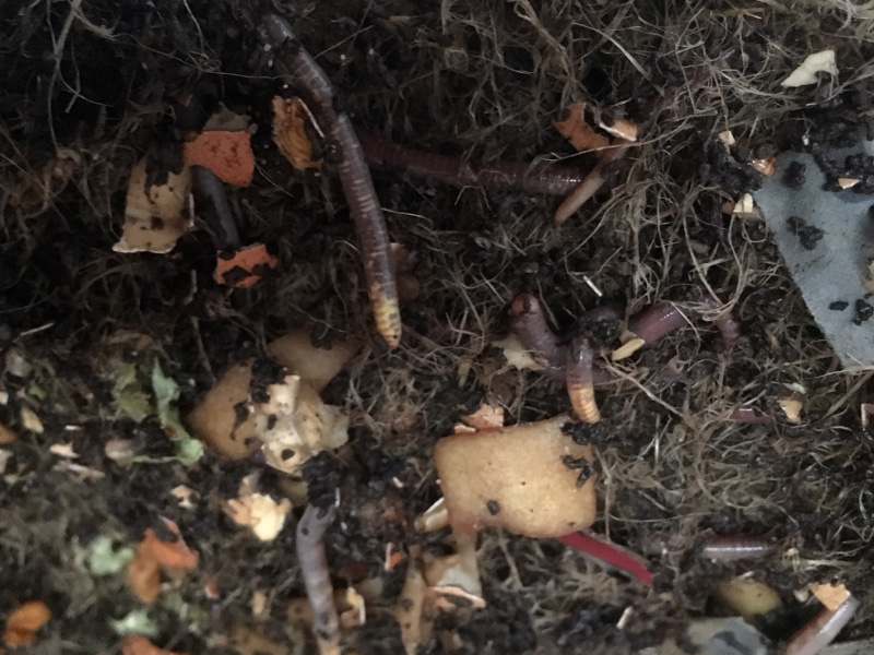 Ich hab mir eine Wurmkiste gebaut, weil ich schon lange eine Kompostlösung haben will. Im September habe ich die erste Lieferung mit 500 Würmern bekommen. Ich hab alles nach Anleitung in die Kiste gepackt, Zeitungspapier und Erde und Würmer. Seitdem steht die Kiste in unserer Küche. Ich bin ja leicht zu begeistern, aber selbst den Mädels macht es Spaß, die Würmer zu füttern und dass dabei auch noch guter Kompost für mich rausschaut, find ich super.