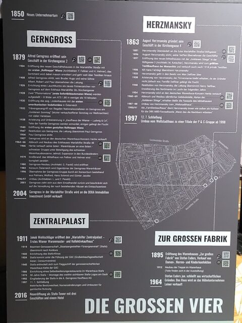 Den größten Teil des Museums nimmt die momentane Sonderausstellung über Die Großen Vier – Warenhäuser der Mariahilfer Straße ein, mit einem besonderen Fokus auf Otto Alscher. Auf einer Wand hängen bebildert Zitate von Alscher, die auch als Pixi-Buch vor Ort gekauft werden können. Momentan hat die Ausstellung kein Enddatum, uns wurde jedoch verraten, dass eine neue Sonderausstellung bereits in Arbeit ist, welche den Fokus auf eine Afrikareise legt – natürlich mit Neubau-Bezug.