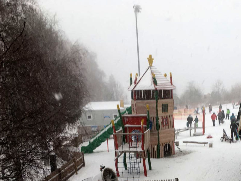 In meinen Augen ist die Infrastruktur sehr familienfreundlich z.B. gibt es einen Spielplatz und ein Lokal, in dem es von Kindern wimmelt und wo es echt gemütlich ist. Die Toiletten sind von außen zugänglich und der Parkplatz ist nahe und groß. Bei mir im Routenplaner war angegeben, dass ich in 1 Stunde 6 Minuten dort sei, aber bei dem Schneefall hab ich etwas länger gebraucht.
